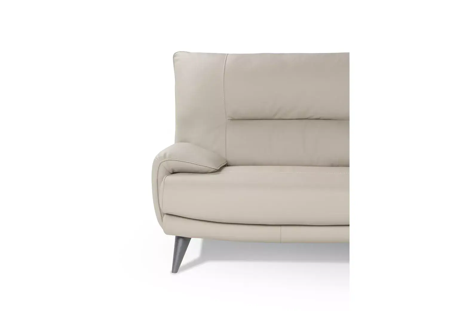 Fein gearbeitete Holzfüße (in verschiedenen Ausführungen verfügbar) und eine sorgfältig abgestimmte Kedernaht setzen stilvolle Akzente.