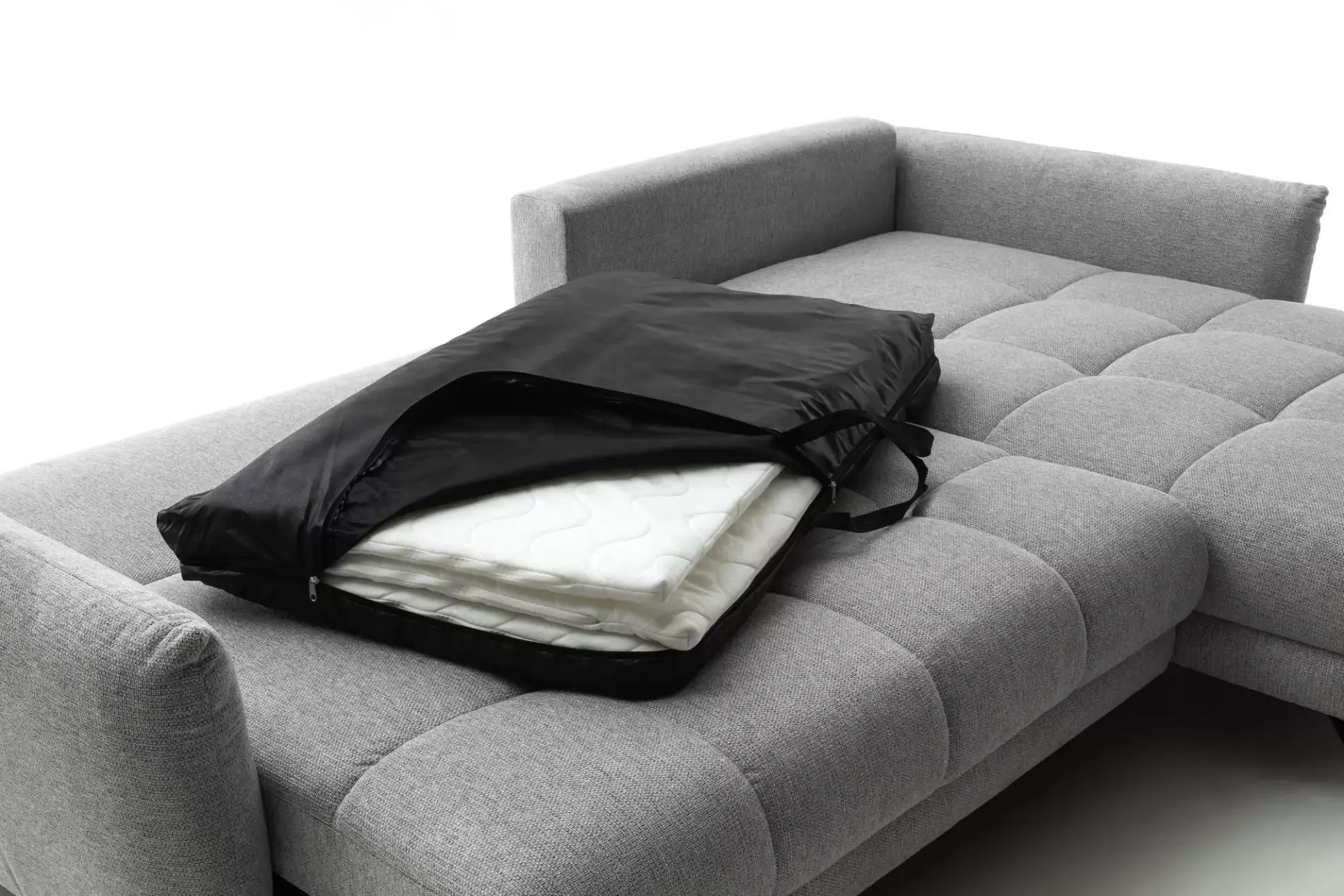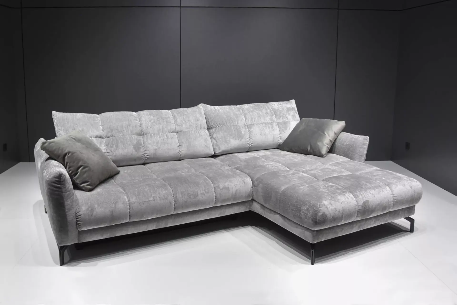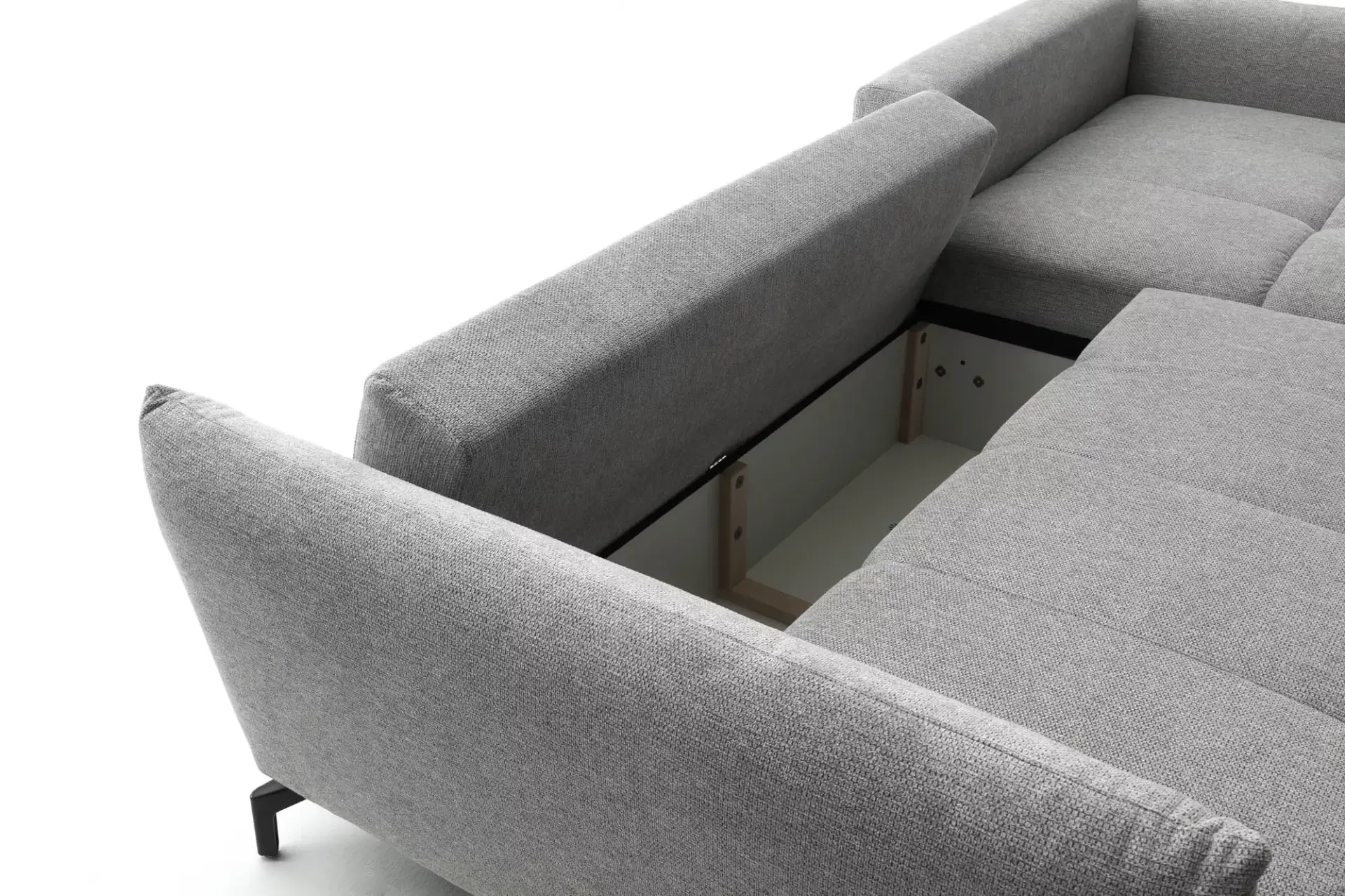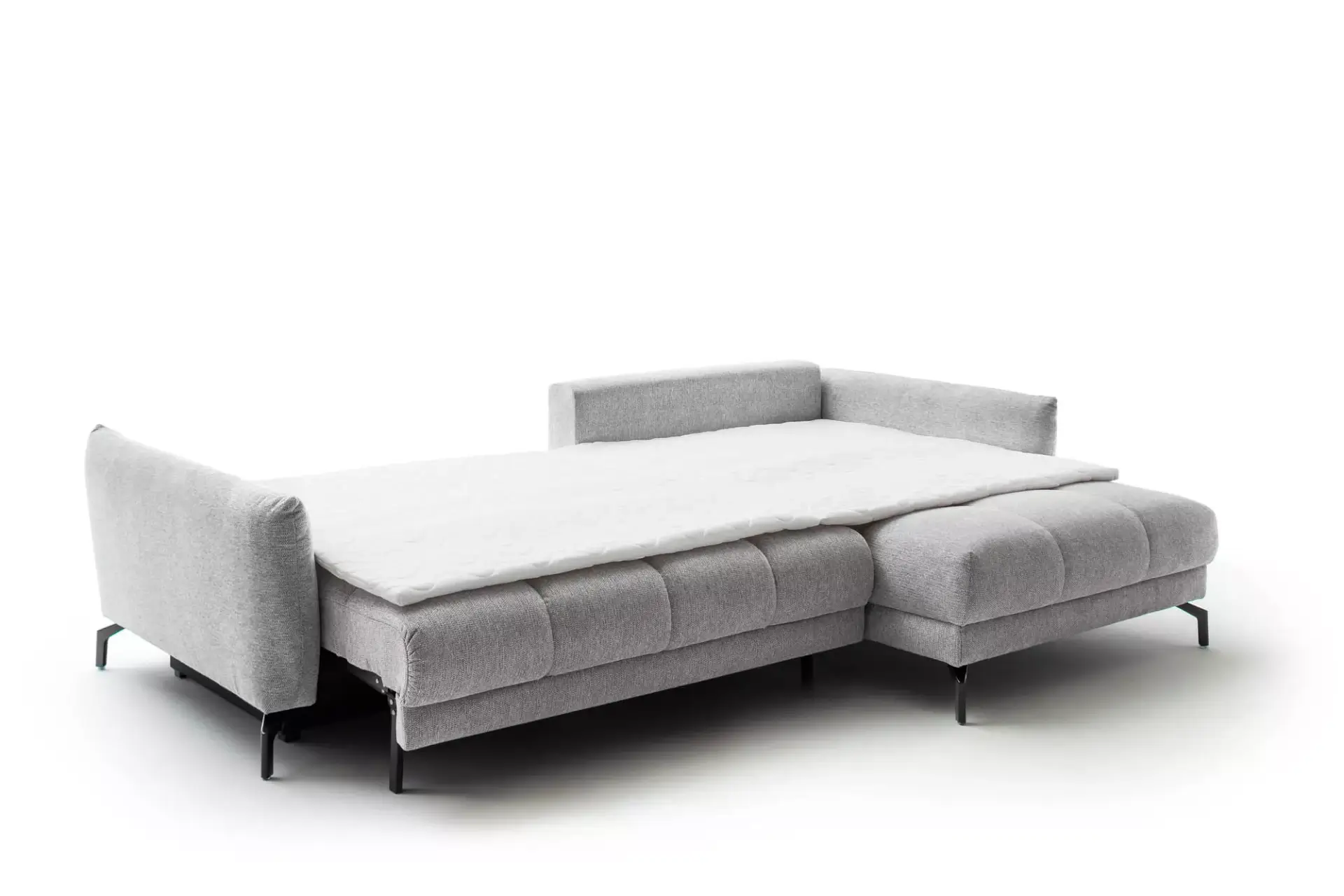 Moderne Wohlfühloase mit  strapazierfähigem Bezug in grau, Beverly 8213 grey, Metallfüße schwarz matt, inkl. 2 Rückenkissen und 2 Luxus-Armkissen in strapazierfähigem Bezug Samt grau, Velvet 17 elephant, inkl. Bettkasten mit Belüftung, Schlaffunktion und Topper mit Transporttasche, Boxspringpolsterung auf der gesamten Sitz- u. Liegefläche, Liegefläche ca. 132 x 246 cm, Schenkelmaß ca. 284 x191 cm, einmalig seitenverkehrt montierbar.