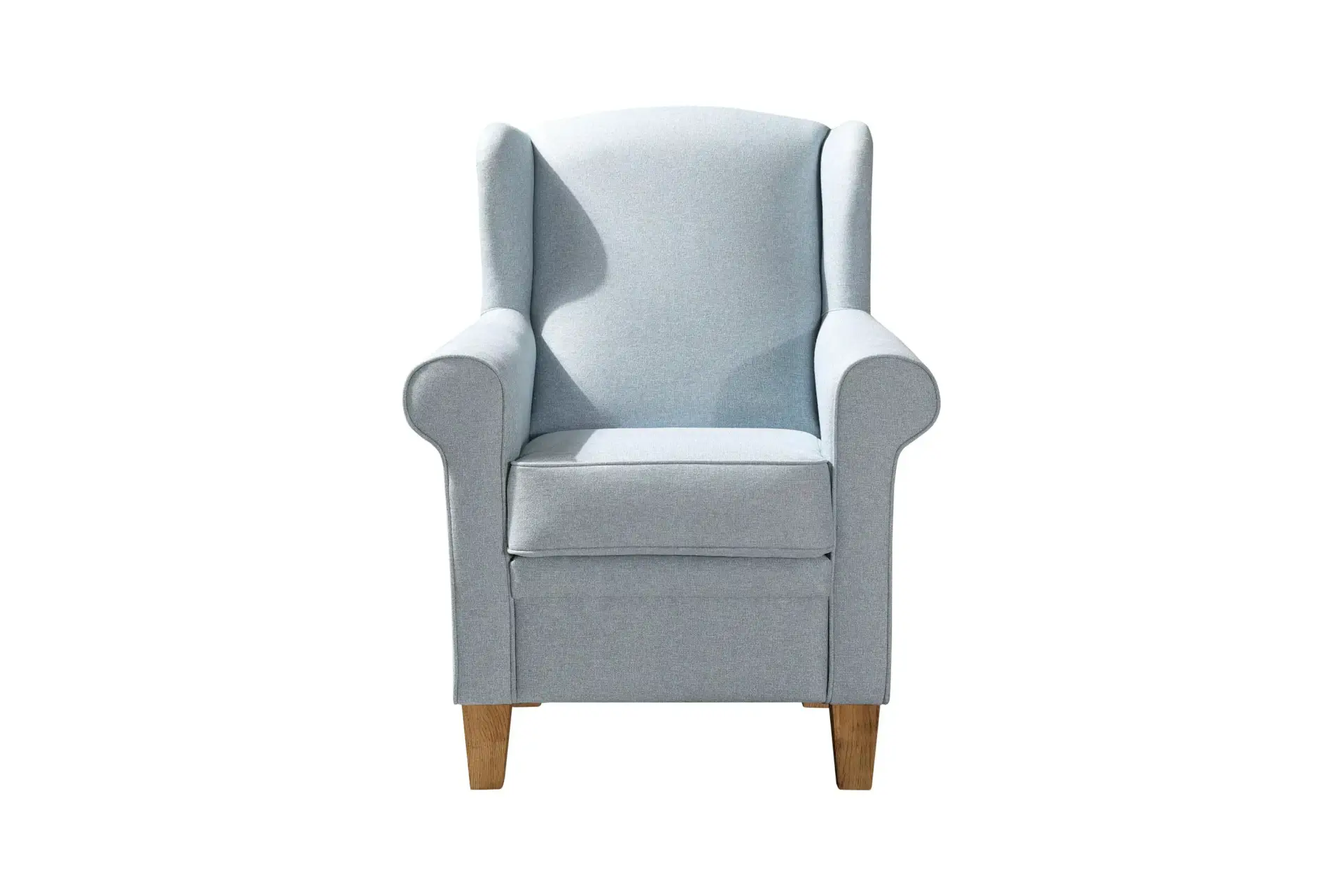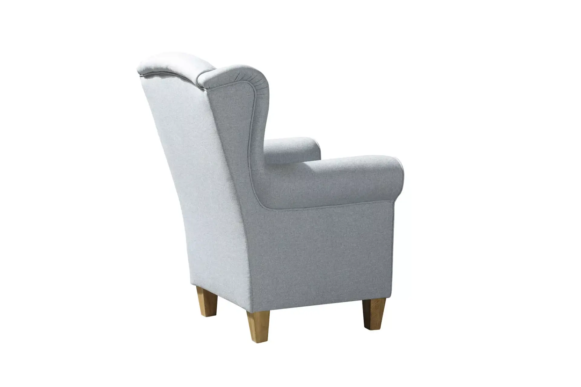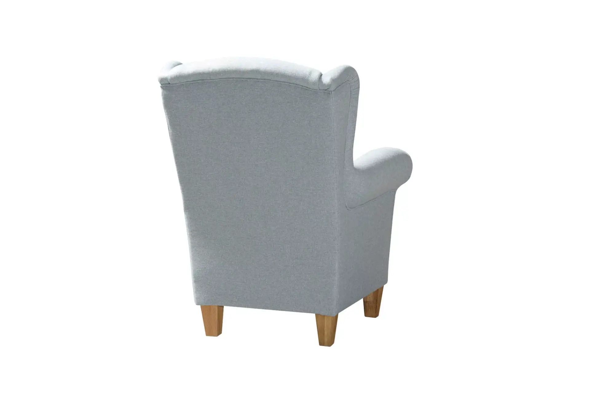 Ein bezaubernder Einzelsessel mit Hocker, Federkernsitz und wählbaren Holzfüßen erwartet Sie.