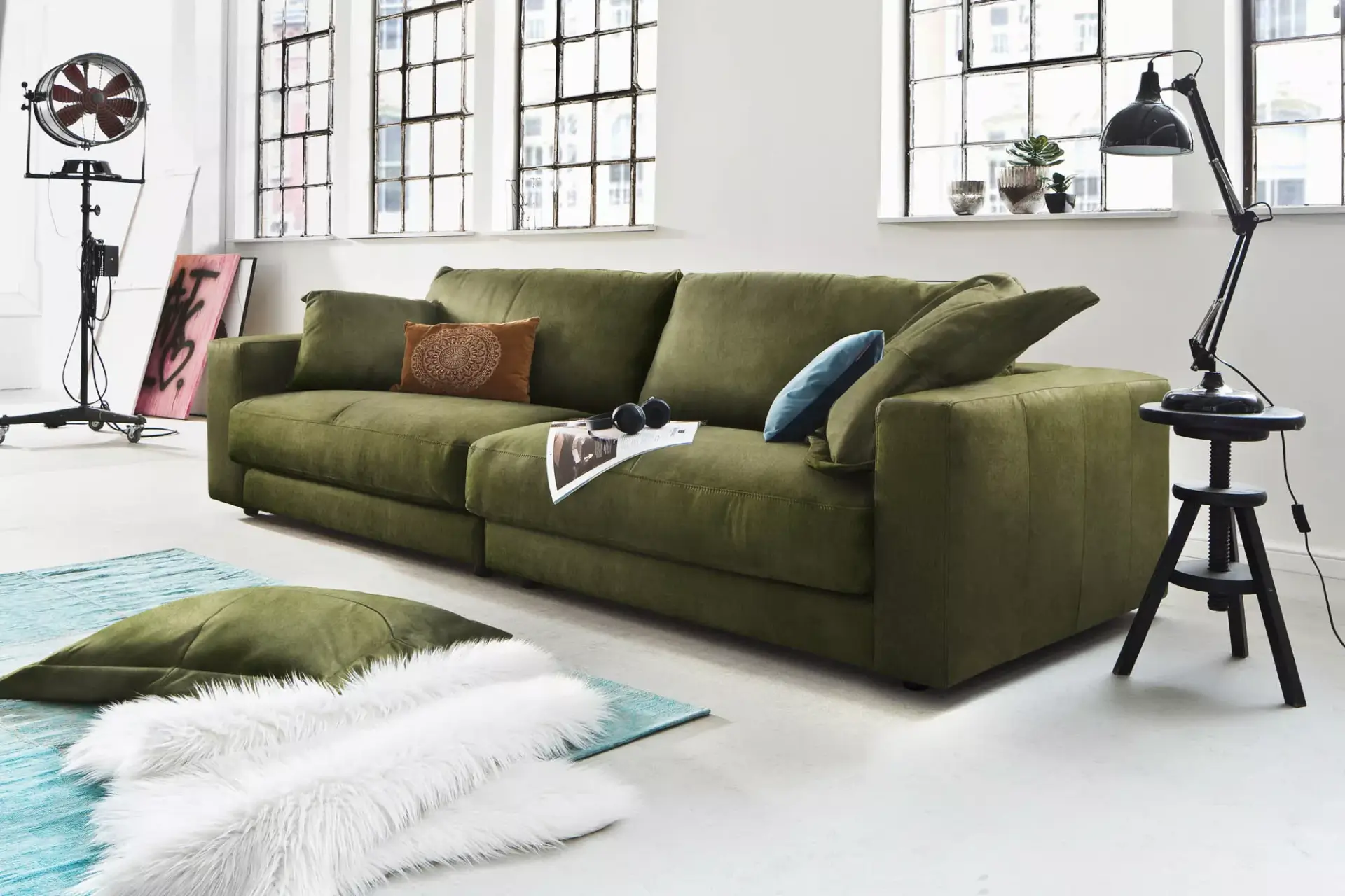 Topmodisches Kuschelsofa mit Wohlfühlcharakter. Je nach Raumgröße von Ihnen zusammengestellt.