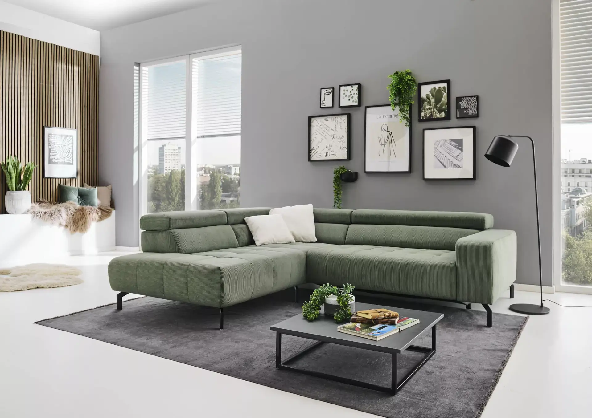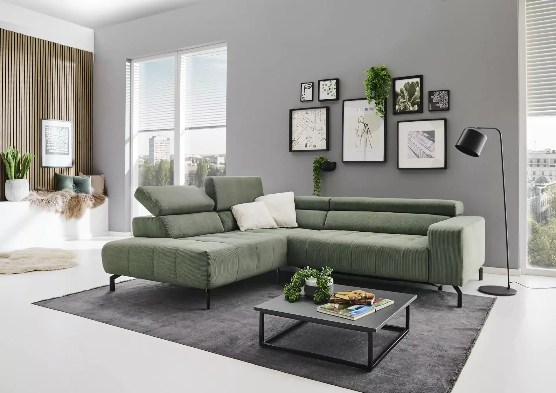 Topmodische Wohnlandschaft mit Kaltschaumpolsterung im Sitz, Kopfpolsterverstellung, zwei Sitzhöhen, zwei Fußausführungen, optional Sitztiefenverstellung und motorische Vorziehbank und vieles mehr.