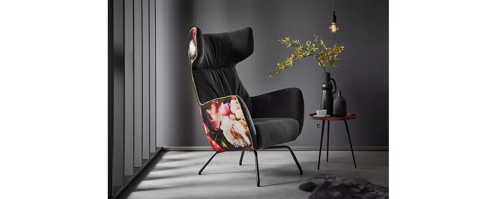 Ein wunderschöner, stylischer Einzelsessel mit Hocker. Urgemütliche Auszeit in Ihrem Wohnraum.