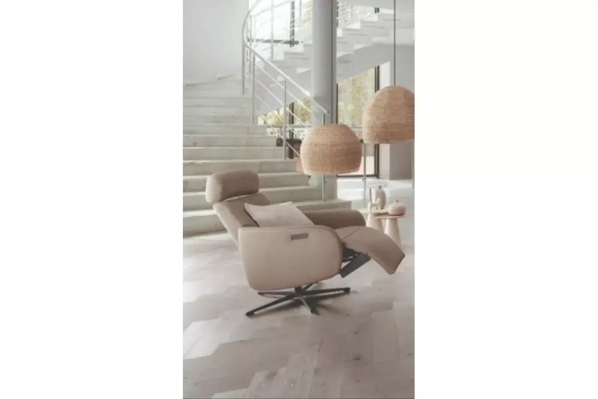 Moderner Relaxsessel in drei Ergonomiegrößen, festgepolstert. Ein legerer Look und stärkere Faltenbildung sind bewusst warentypisch. Verschiedene Armlehnenvarianten, manuelle Bedienung oder motorische Unterstützungen sind in verschiedenen Ausführungen erhältlich. Ebenso interessant ist die 360° Drehung.