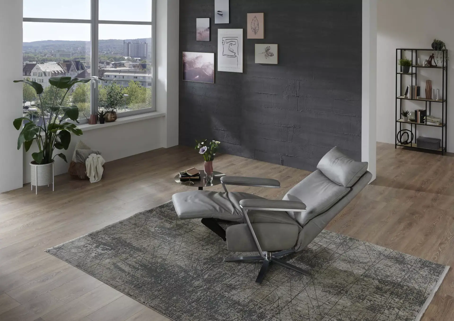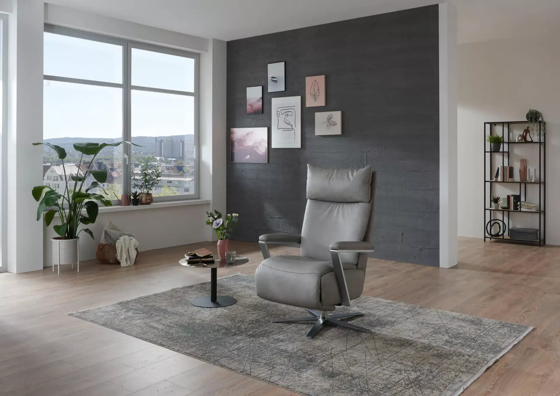 Stylischer Relaxsessel in drei Ergonomiegrößen, Maxirücken mit Verlängerung von ca. 5 cm, verschiedene Armvarianten und natürlich das Wichtigste: Funktionen von manueller Bedienung bis zur dreimotorischen Funktion mit Herz-Waage-Stellung und Aufstehhilfe. Als besonderes Highlight ist die Massage-Funktion hervorzuheben.