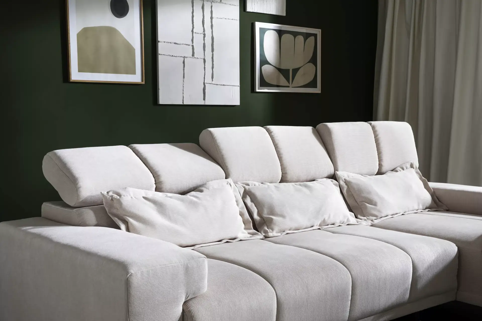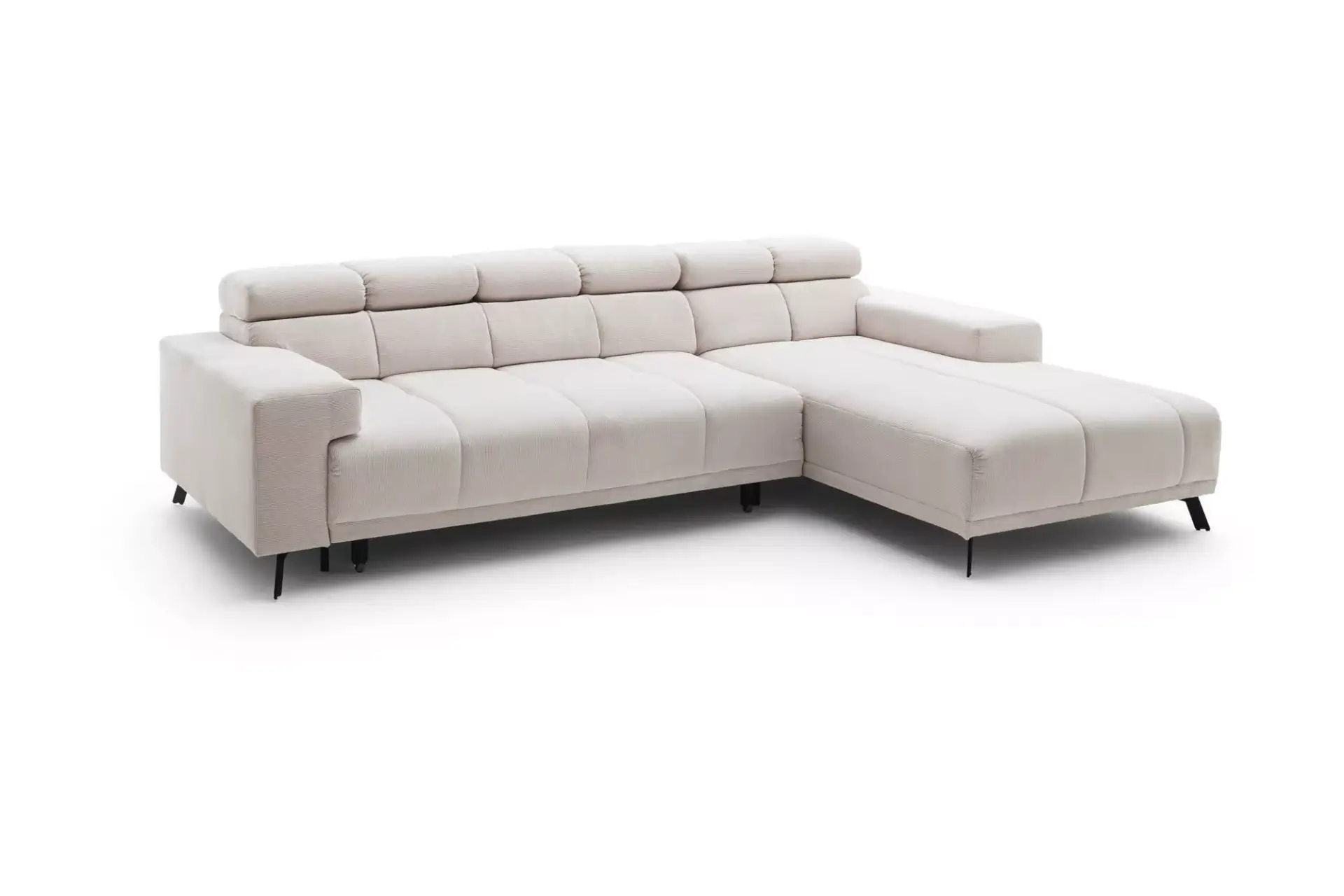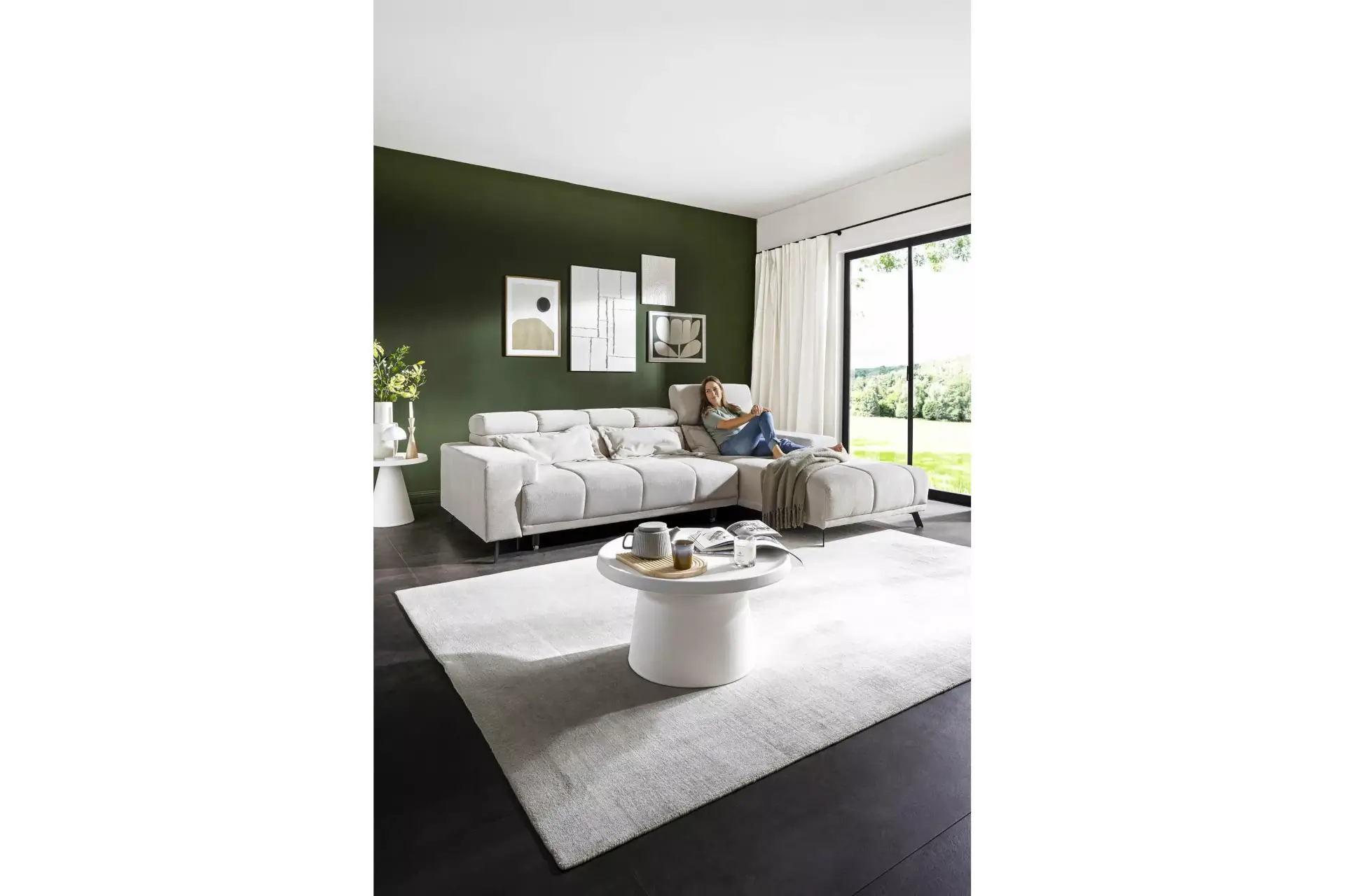 Wohnlandschaft mit Bezug Fjord 23 Beige (PG1), Nosagunterfederung, Bonellfederkern, Metallfüße schwarz (alternativ creme oder chrom), inklusive elektrischer XXL-Sitztiefenverstellung (60cm), 3 manuelle Kopfteilverstellungen, inklusive 3 Flatterkissen, Schenkelmaß ca. 285x201cm, Liegefläche ca.130x222cm, Höhe ca.79 bis 99cm,Sitztiefe ca.70 bis 130cm, Sitzhöhe ca.45cm, auch seitenverkehrt erhältlich.