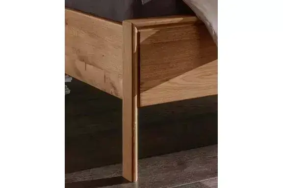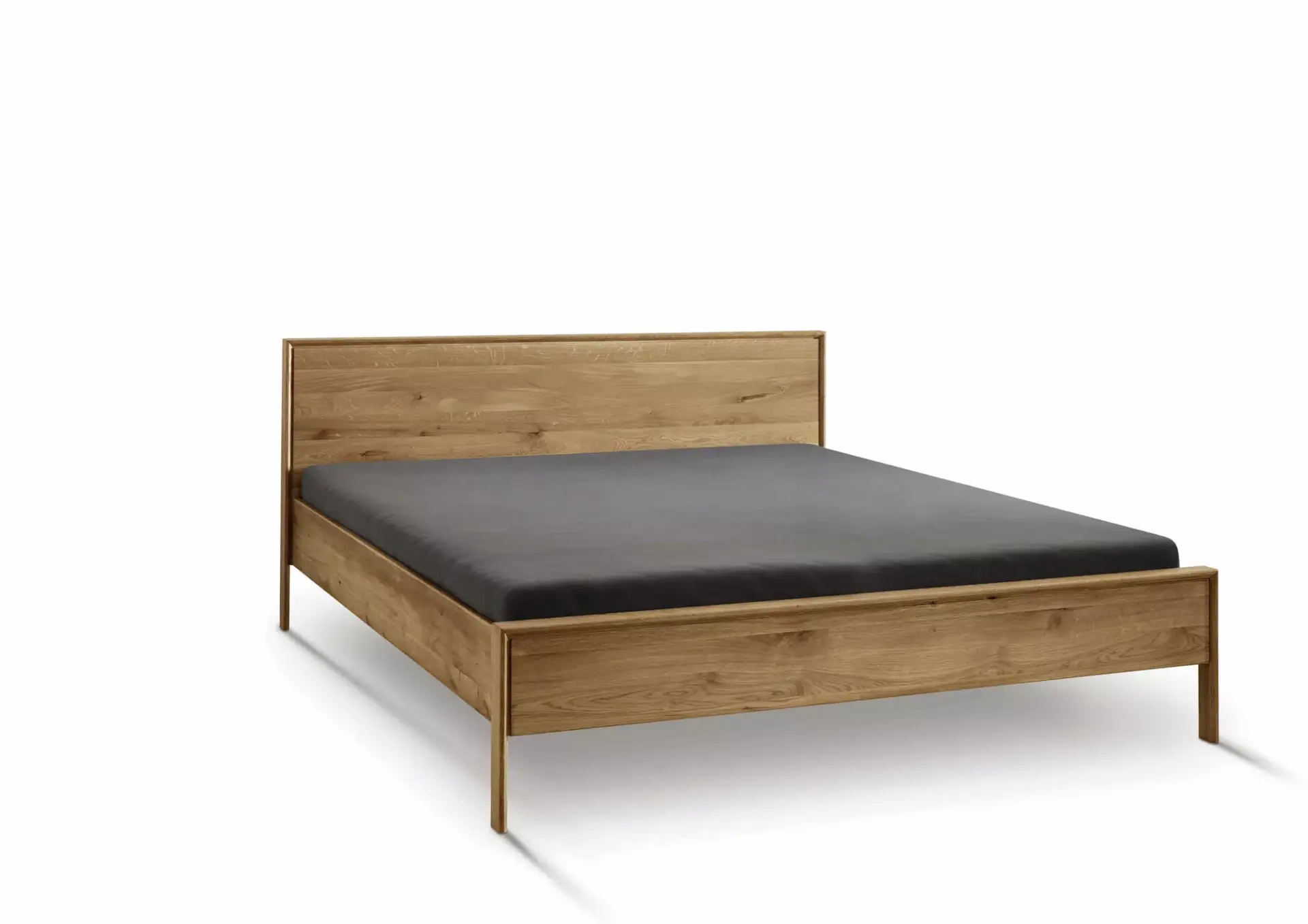 Geradliniges, edel aussehendes Bett mit freistehender Nachtkommode aus Wildeiche.