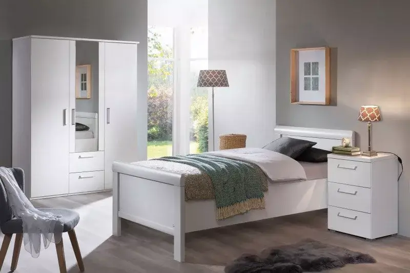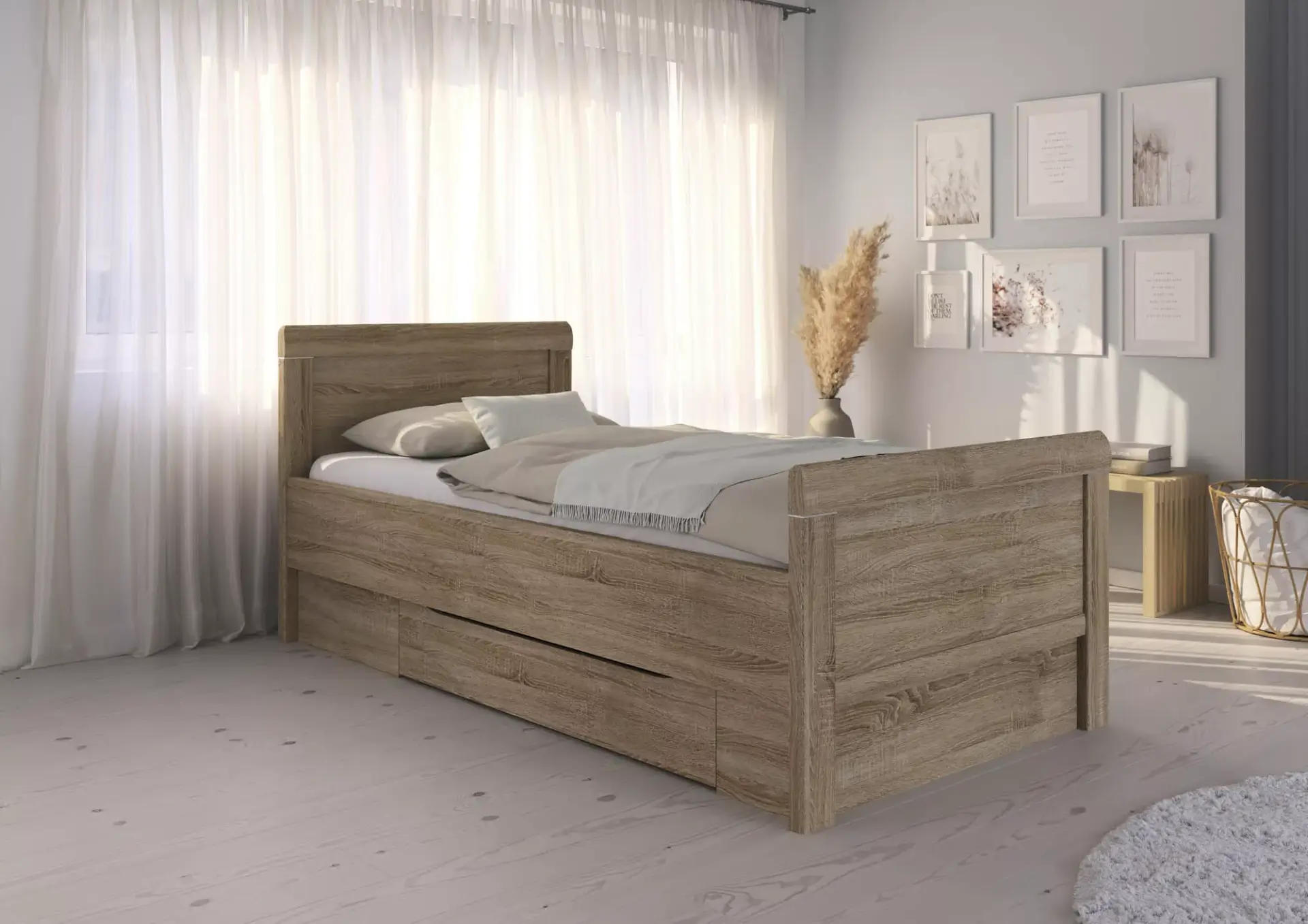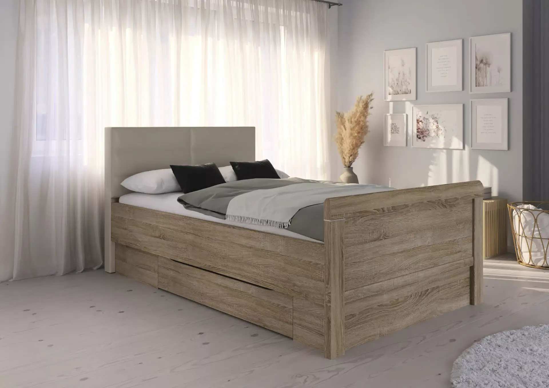 Komfortprogramm EVELYN mit Korpus und Front in alpinweiß, Dekordruck Eiche Sonoma oder Dekor Asteiche. Ein umfangreiches Programm mit vielen Ergänzungen erwartet Sie.
