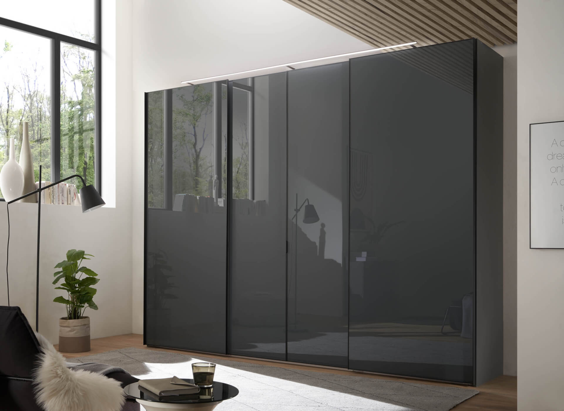 Schwebetürenschrank in verschiedensten Front- und Korpusfarben, praktischen Inneneinsätzen und verschiedensten Größen.