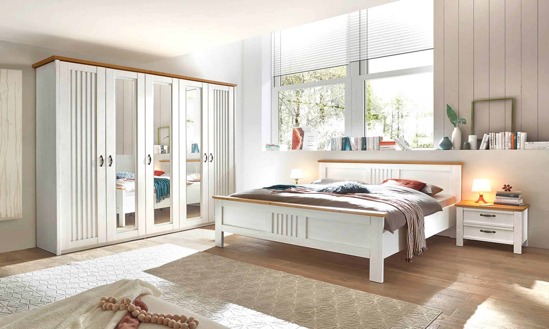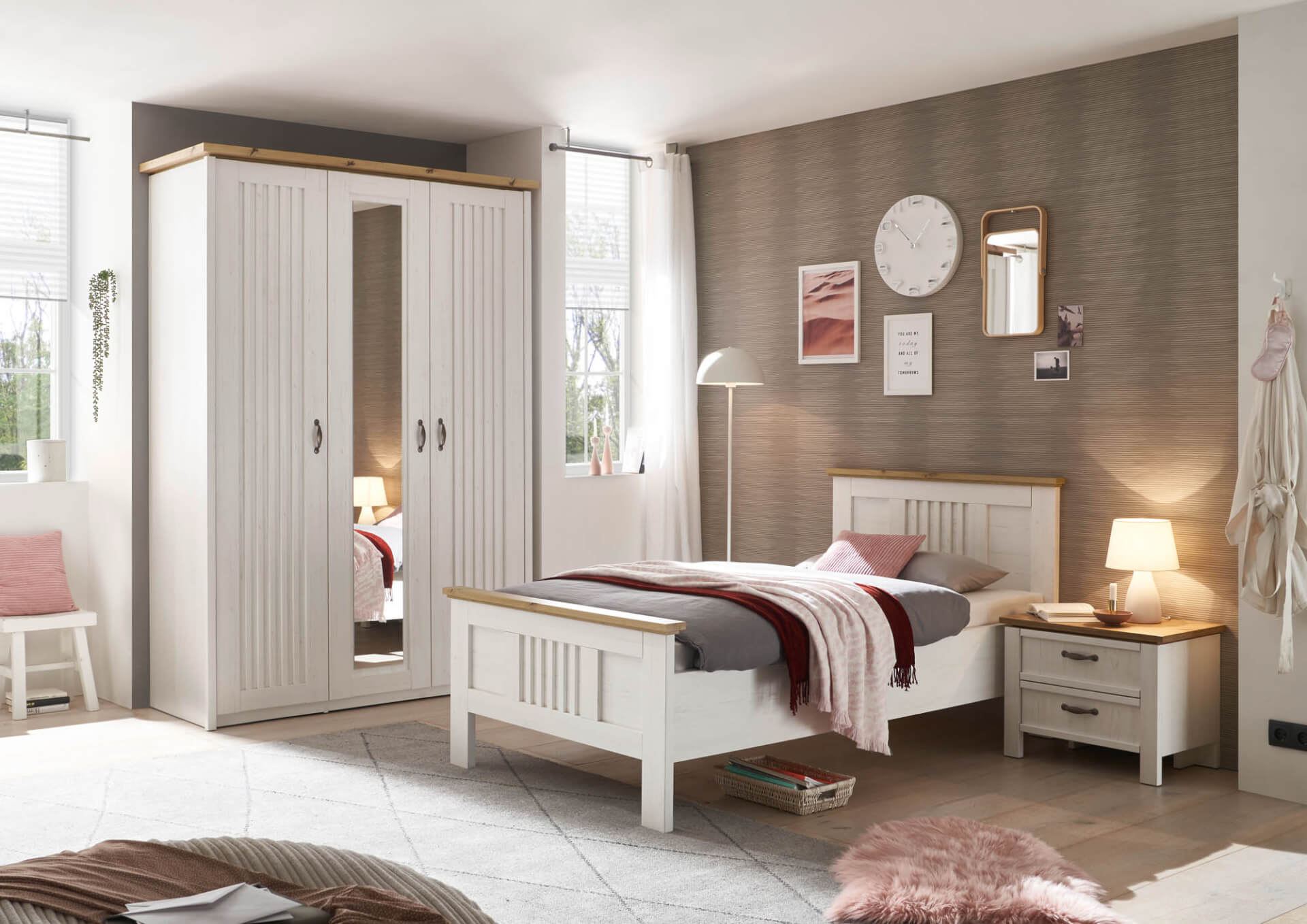 Schlafzimmer mit Korpus in Andersen Pine / Artisan Eiche  und Front in Dekorfolie Andersen Pine.