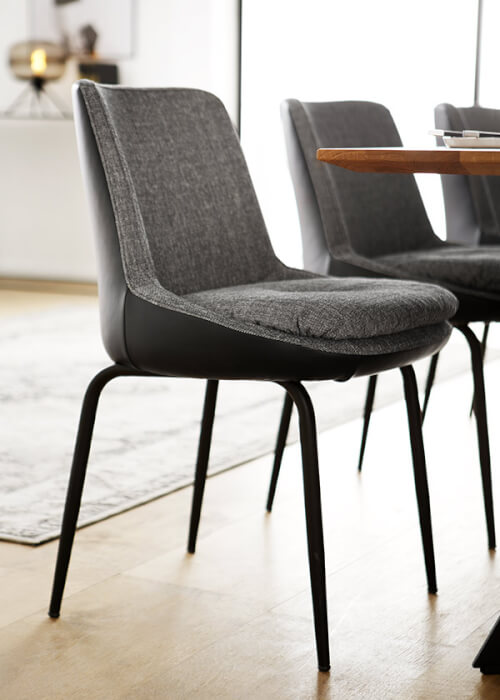 Hier sind die Namen Programm! Drei verschiedene Optiken und Komforts in Verbindung mit drei verschiedenen Metalluntergestellen erlauben frei Gestaltung! Diese Stühle sind auch in Kombination verschiedener Bezugsqualitäten und Farben lieferbar. Sie haben die Wahl.