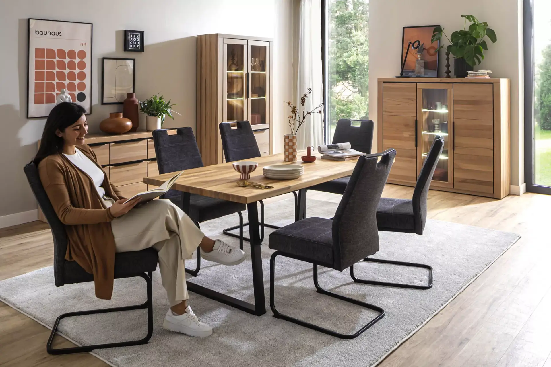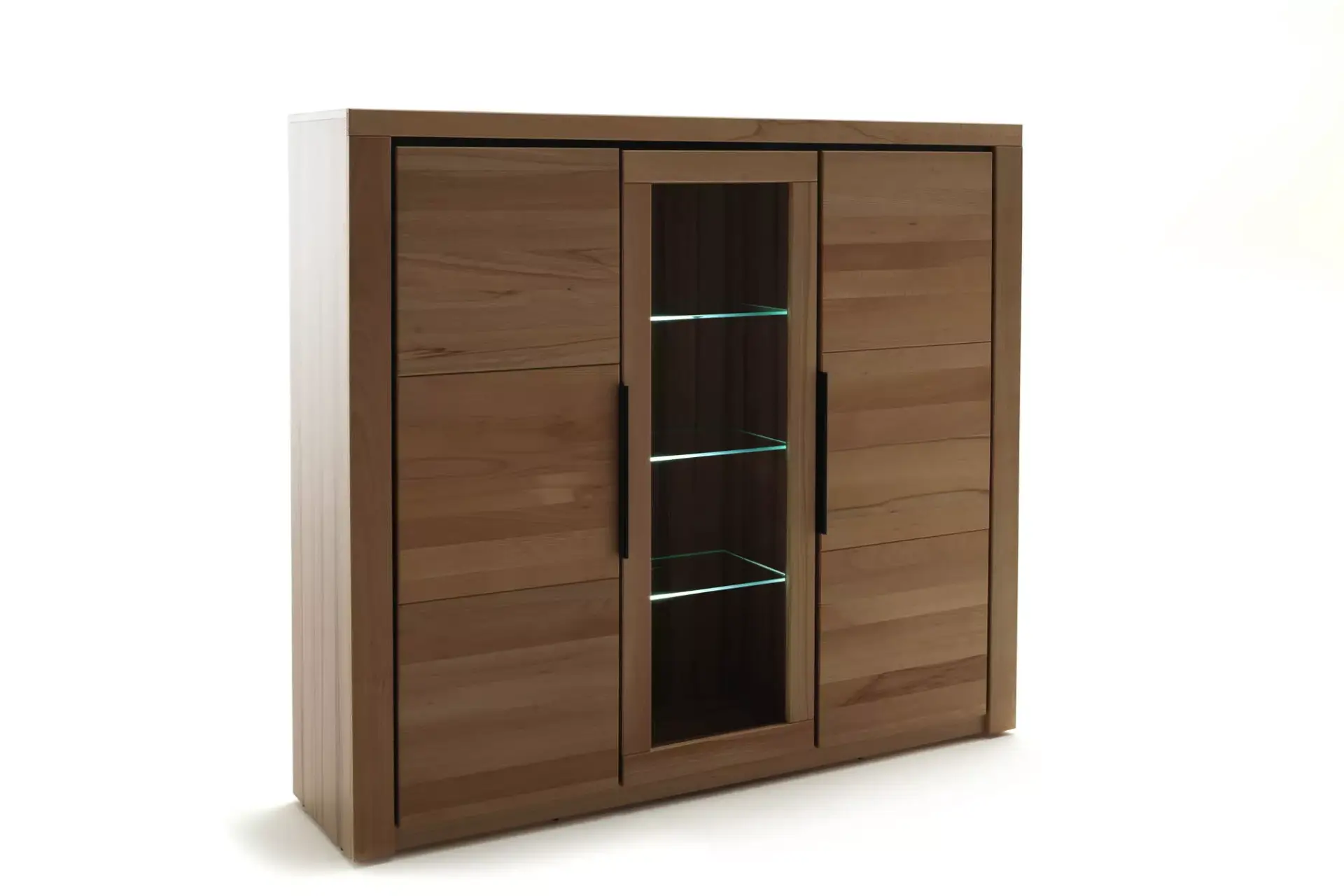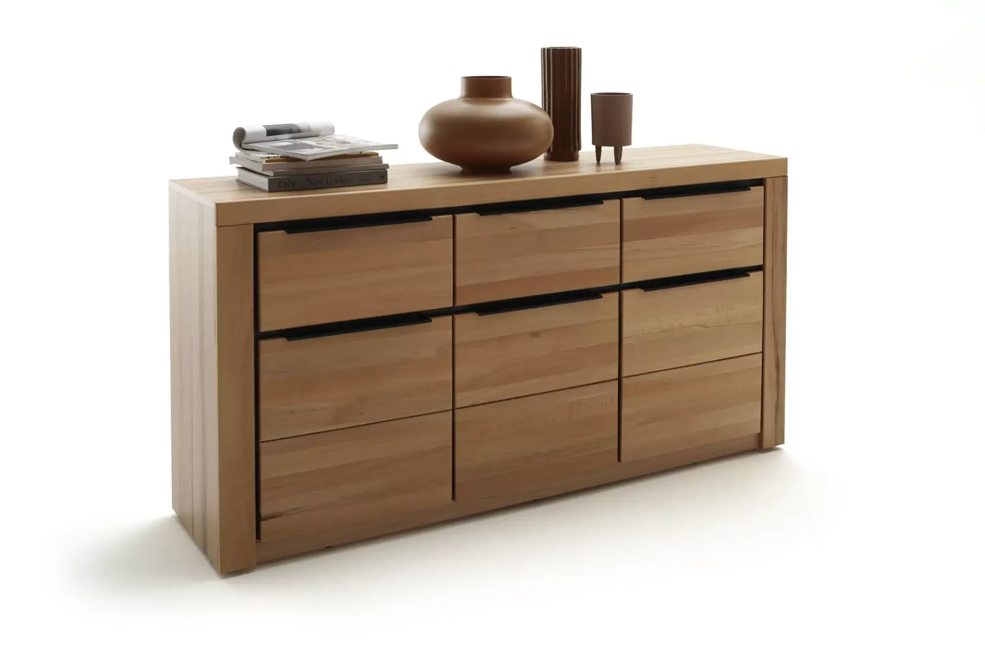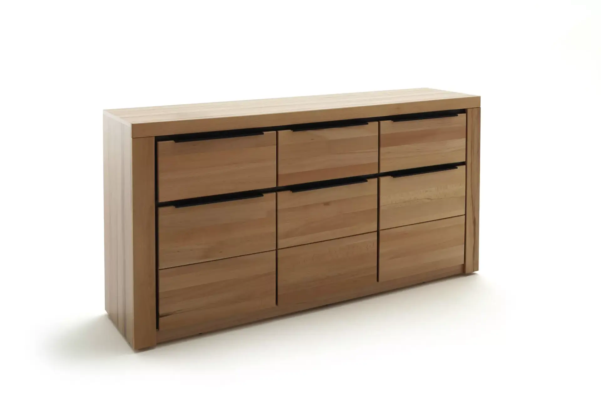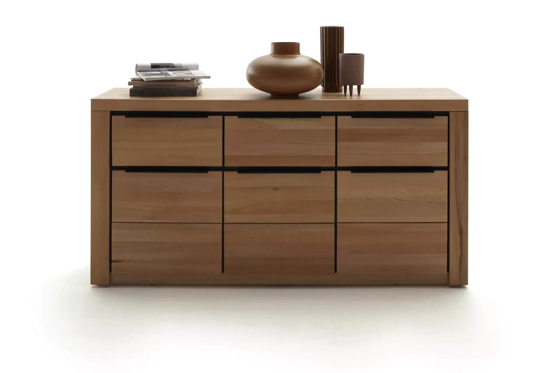 Trendiges Programm mit Fronten in Kernbuche massiv, Korpus Nachbildung. Schattenfugen sind ebenso wie die Griffe in schwarz.