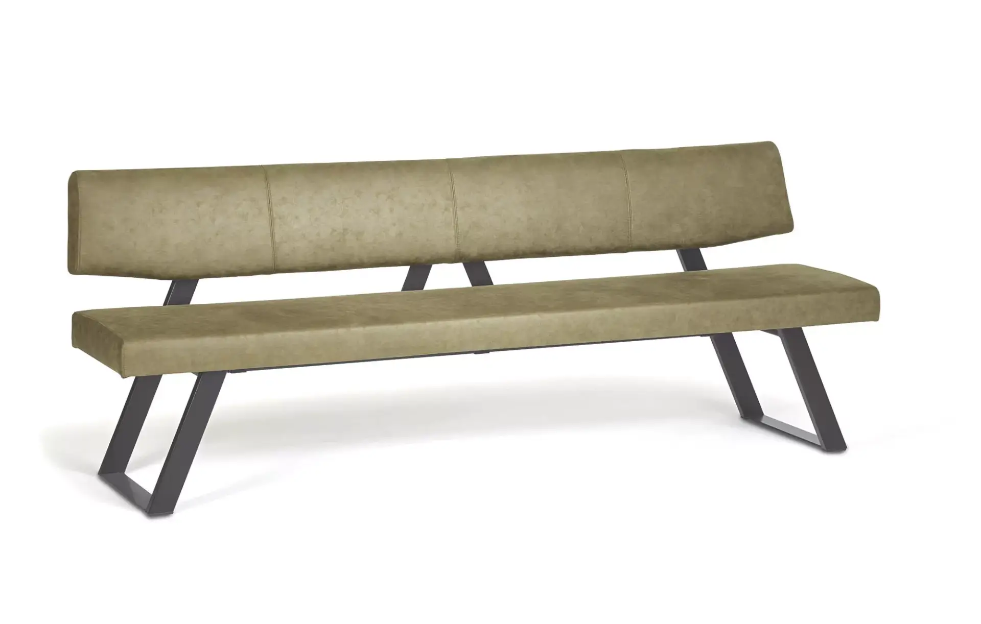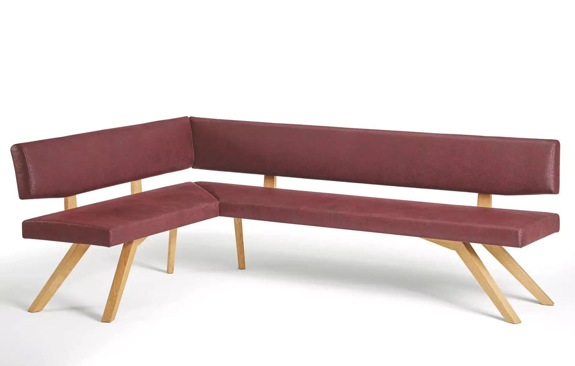 Tischgruppe, bestehend aus Esstisch und Polsterbank und Polsterstühlen.