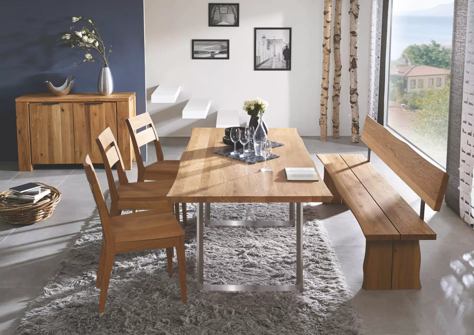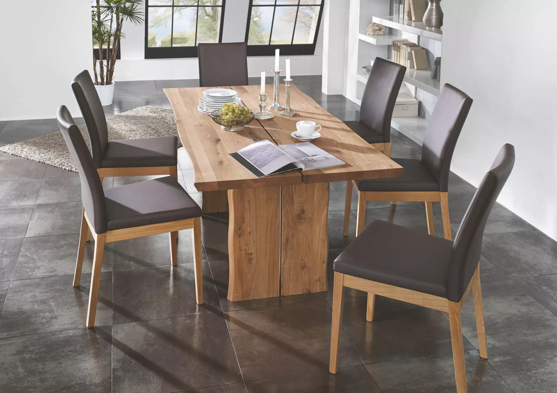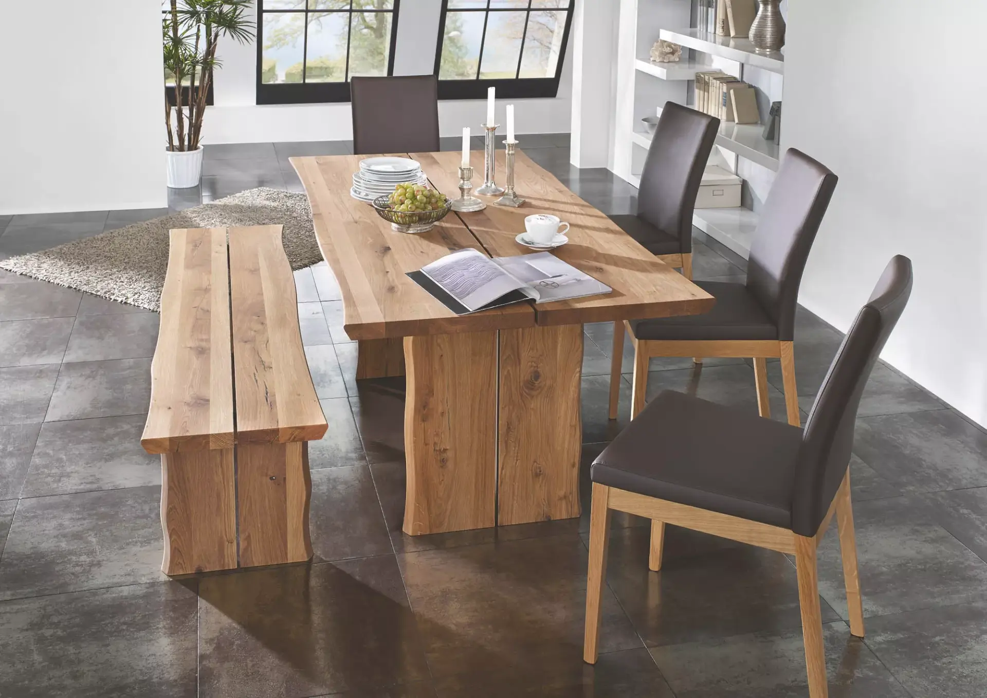 Massiver Tisch mit Platte  in Wildeiche massiv geölt mit Baumkante,