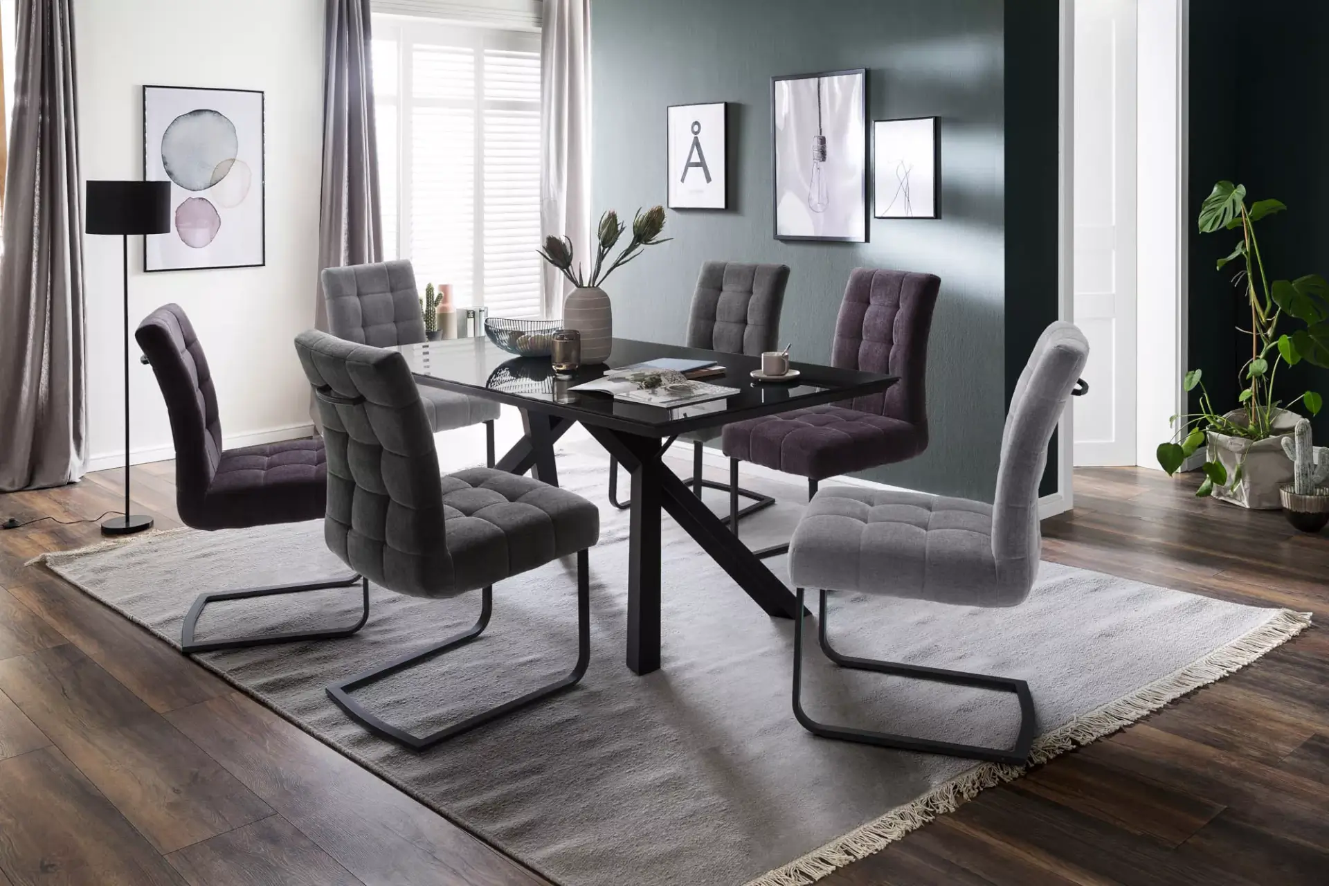Vierfußtisch mit einer 8 mm Sicherheitsglasplatte  und einem Gestell in schwarz matt lackiert.