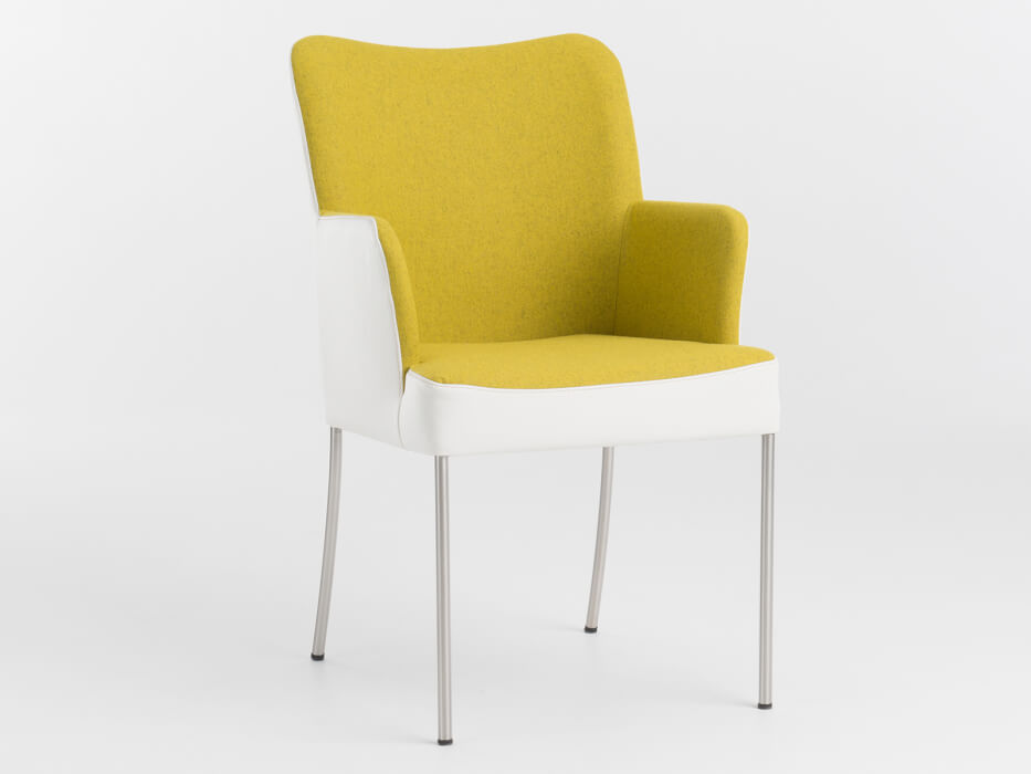 SALSA ist ein einzigartiger Stuhl mit einer halben geschlossenen Armlehne. Das zierliche Modell kann unter jede Tischplatte kann unter jede