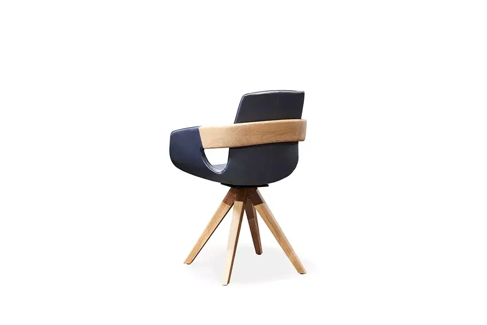 Polsterstuhl mit Holzgestell in Kerneiche Natur oder Umato. Sitz und Rücken gepolstert, wahlweise mit Elastic-Aktiv-Federung und Drehrückholfunktion.