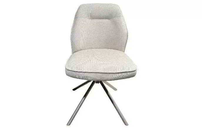 Polsterstuhl mit- und ohne Armlehnen mit Stoff in Chenille-Optik mit Keder und einem Gestell in Edelstahl gebürstet, rund. 180° drehbar mir Nivellierung.