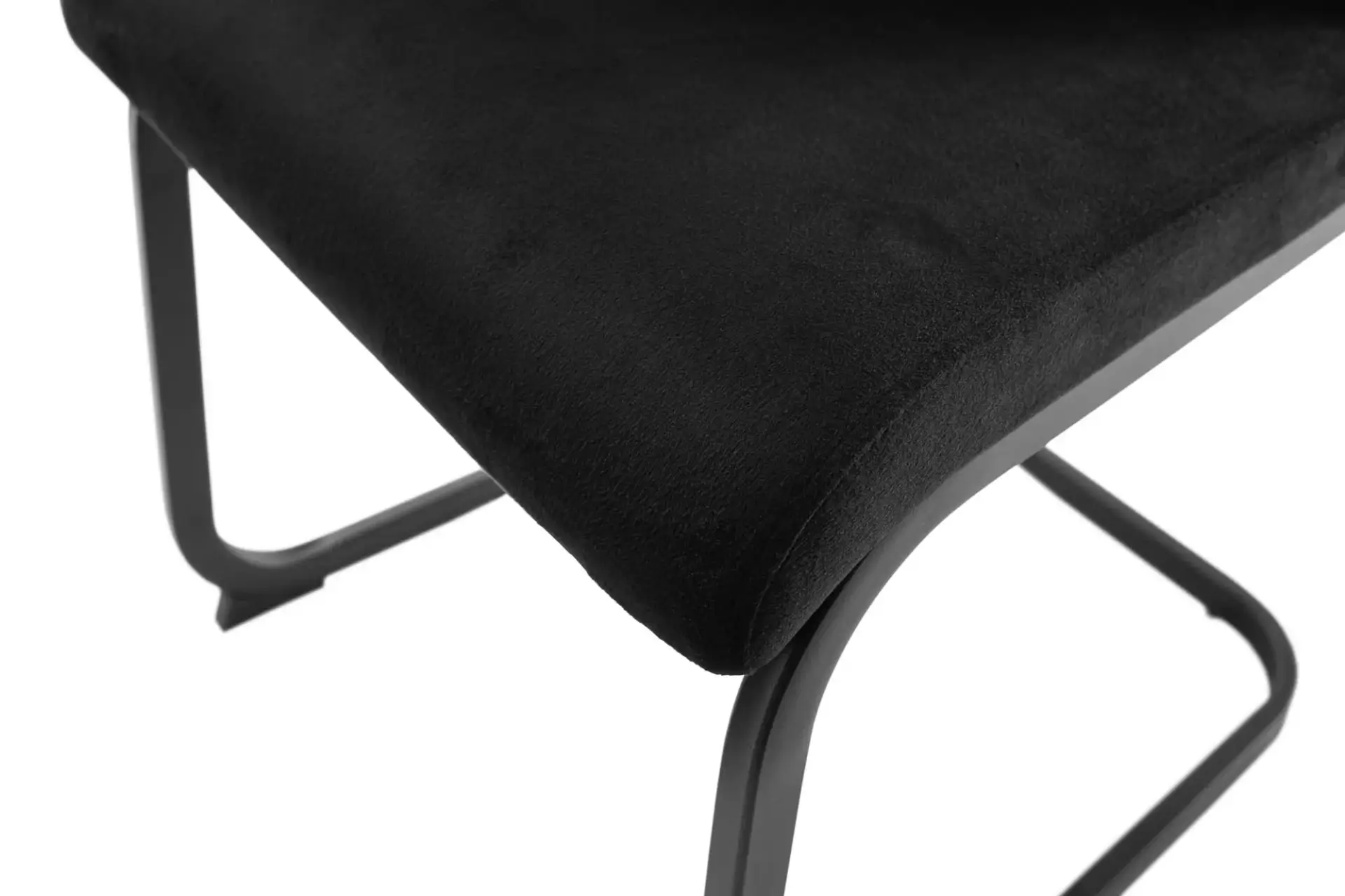 Ein moderner Schwingstuhl mit strapazierfähigem Bezug in Veloursoptik in schwarz. Das Metallgestell ist schwarz matt lackiert, belastbar bis max. 120 kg, BHT ca. 43 x 96 x 58 cm.