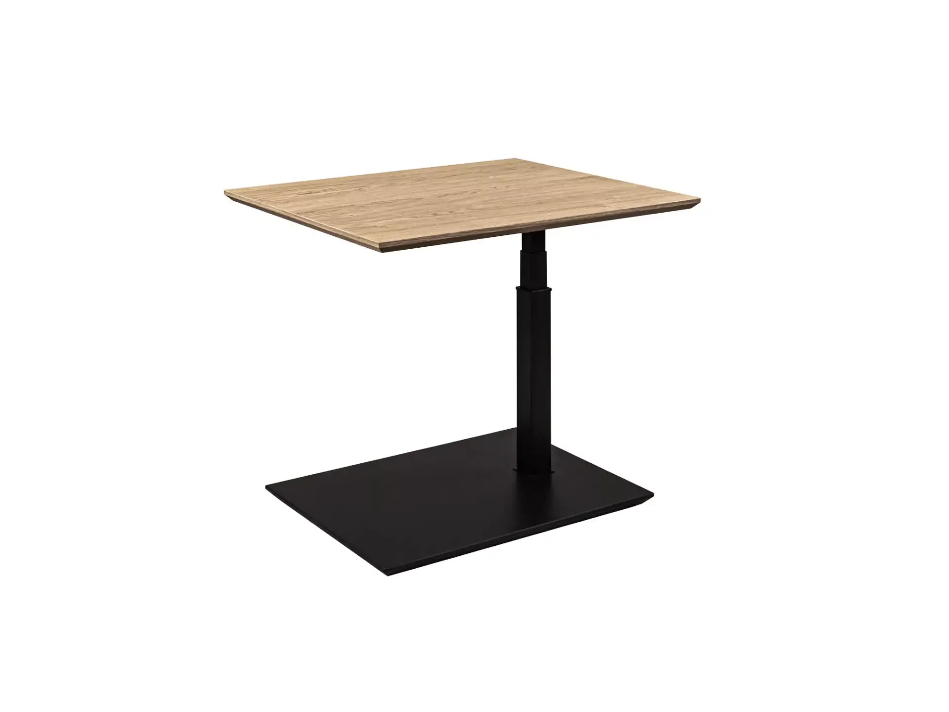 Funktions-Couchtisch mit Tischplatte in Wildeiche furniert MDF Trägerplatte, Gestell llse Hydro Lift Mechanik anthrazit metallic lackiert, Bodenplatte anthrazit metallic Schliffoptik lackiert, Rollen, Beizton wildeiche bianco lackiert/anthrazit metallic Effekt, BHT ca. 70/47-65/60 cm.