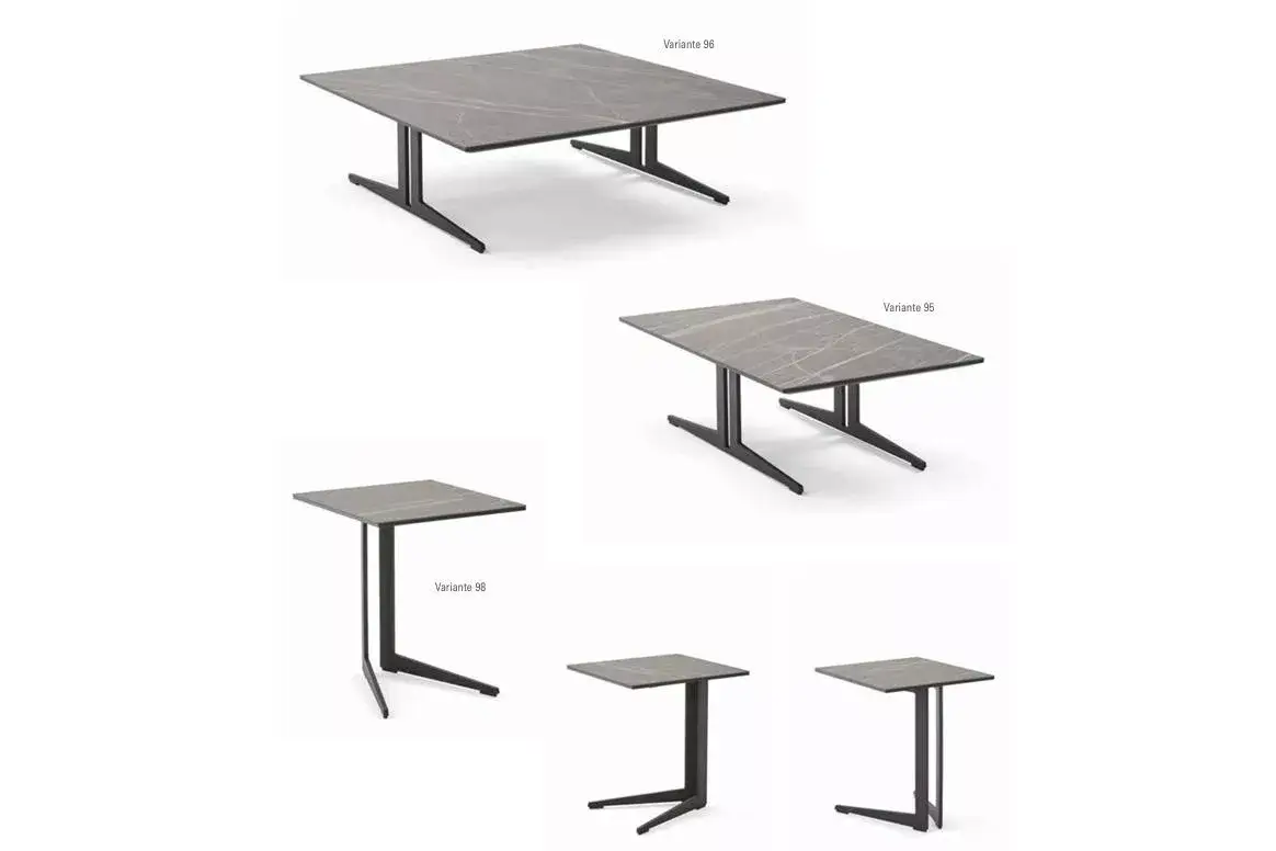 Couchtisch mit Metallgestell in anthrazit und einer Tischplatte in Keramik Rock Gold oder Wildeiche.