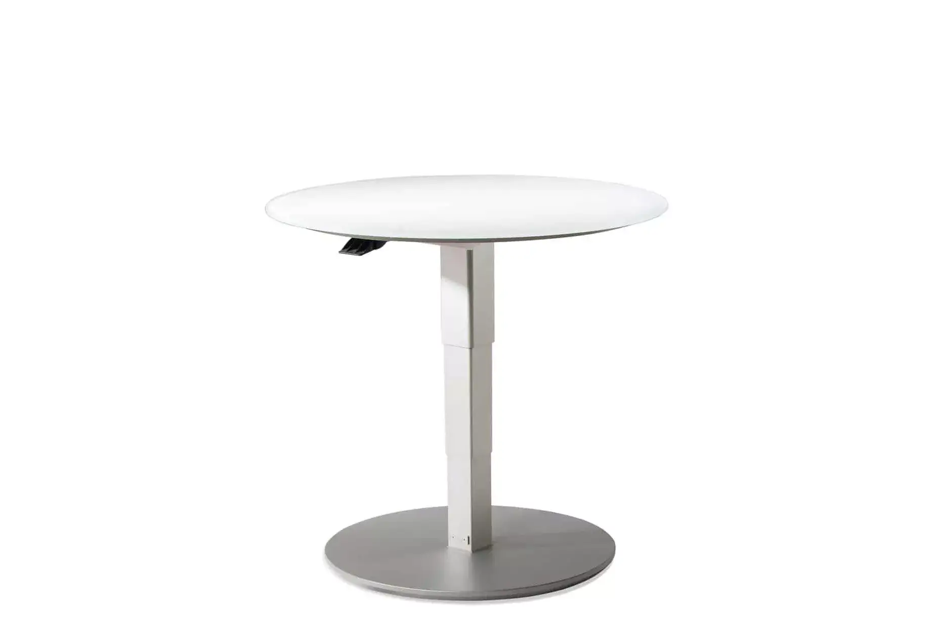 Gestell: Komfort-Tele - Lift - Mechanik, Bodenplatte MDF mit Schliffoptik, Liftsäule perlsilberfarbig lackiert, Rollen.