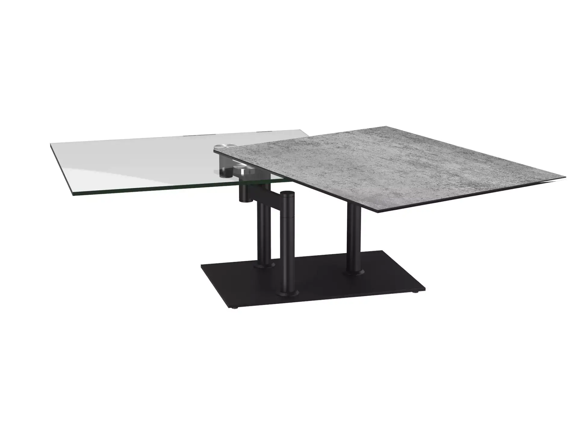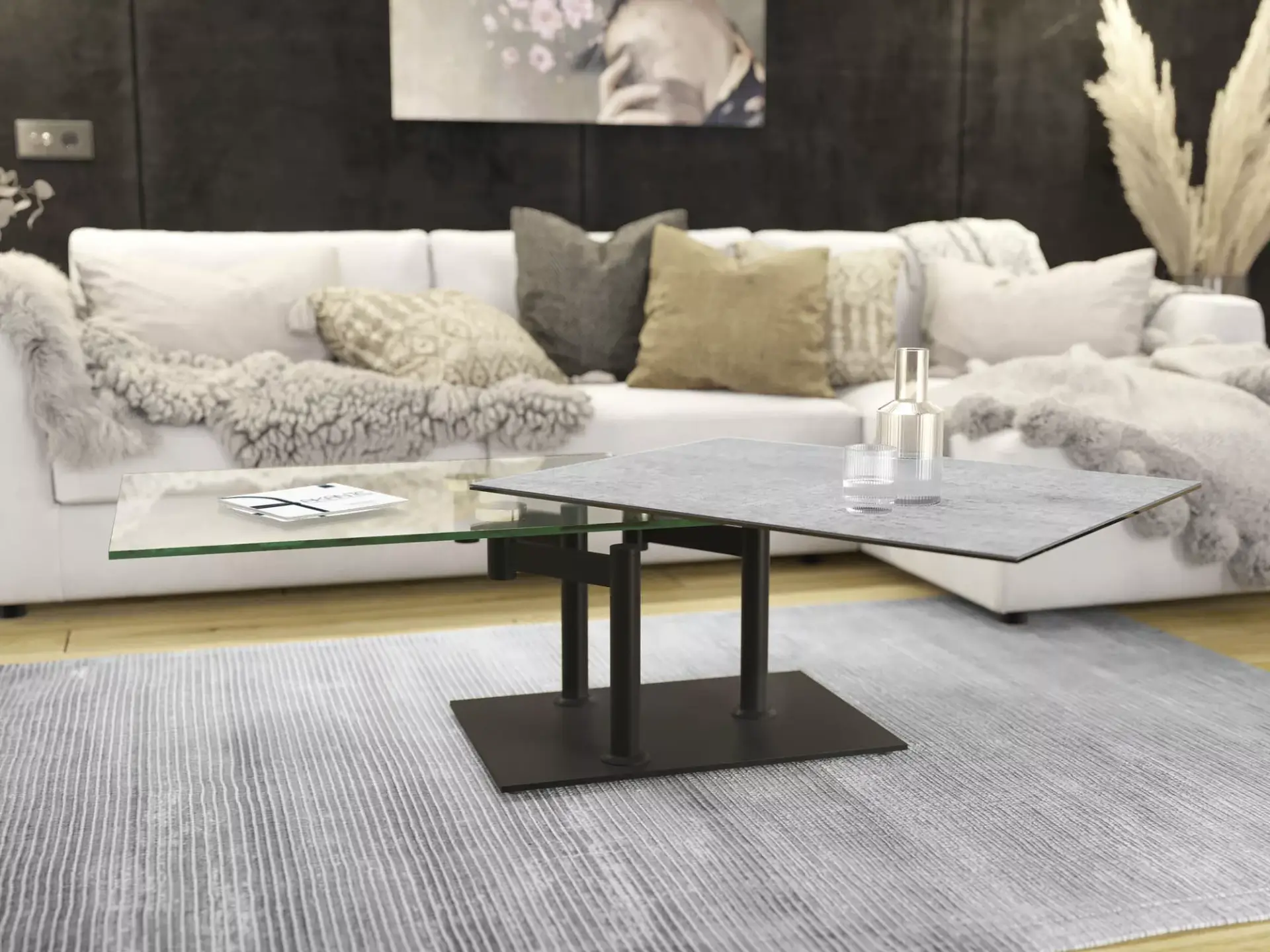 OPERA, ein Couchtisch in einem feinen Design. Die Tischplatten verfügen über einen synchronisierten Mechanismus, der eine Vielzahl von Einstellungen ermöglicht. Ein Aperitif, eine Party oder Kaffe mit Freunden? Dieser Couchtisch passt sich Ihren Wünschen an.