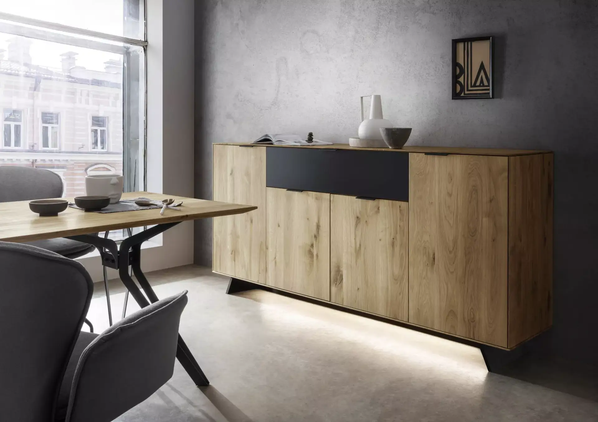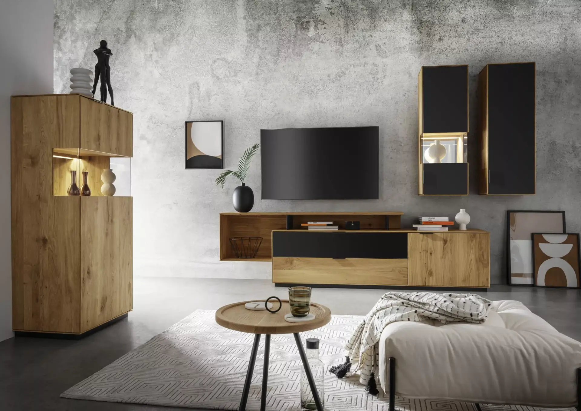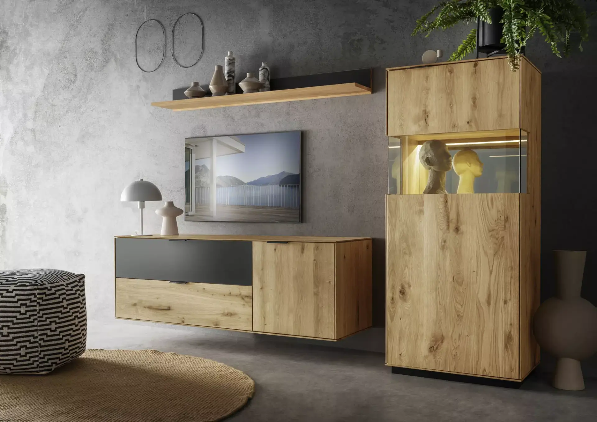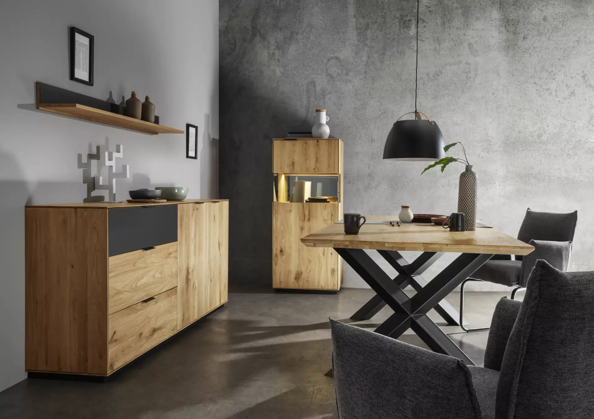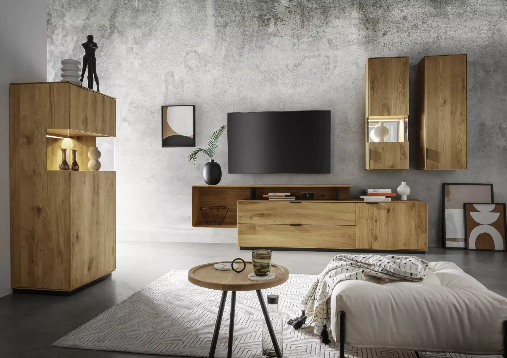 Diese Kollektion aus Wildeiche besticht durch ihre Vielseitigkeit. Die klare Formsprache der Lugano Möbel verleiht Ihrer Wohnumgebung eine geradlinige, moderne und dennoch schlichte Ästhetik. Mit unzähligen Gestaltungsmöglichkeiten bietet Lugano eine breite Palette an Optionen für das Wohn- und Speisezimmer. Die Möbel können entweder hängend, stehend mit einem Sockel oder einem beleuchteten Untergestell konfiguriert werden. Des weiteren stehen unterschiedlichen Holz- und Glasfronten sowie diverse Rückwandvariationen zur Verfügung. Erleben Sie die eine einzigartige Kombination aus Qualität, Ästhetik und Funktionalität.